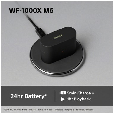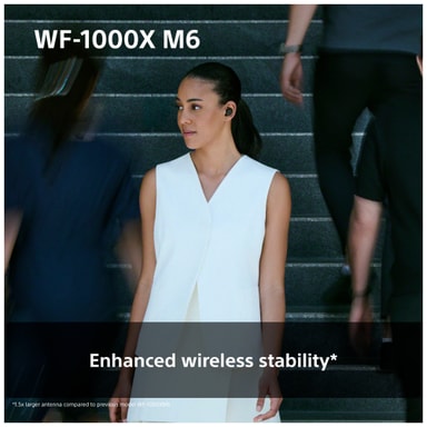 WF-1000XM6 är helt trådlösa, vilket ger dig fullständig frihet utan kablar mellan din enhet och öronsnäckorna. Njut av din musik kabelfritt oavsett om du pendlar, reser eller kopplar av hemma.