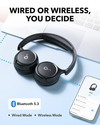 • Soundcore H30i trådlösa on-ear hörlurar (svart)
