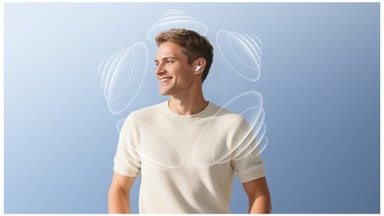 Specialdesignade 11 mm dynamiska element levererar kraftfull bas och kristallklara detaljer i varje låt. Spatial Audio-tekniken förbättrar djup och klarhet och omger dig med en fyllig, biografliknande lyssningsupplevelse.