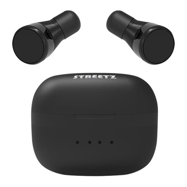 STREETZ trådlösa hörlurar med laddningsfodral True Wireless Stereo Trådlösa TWS-hörlurar från STREETZ med mikrofon, samtal/medieknappar, Bluetooth 5 med 10m räckvidd och en ergonomisk passform för bekväm lyssning i upp till 16 timmar med det medföljande laddningsväskan. Perfekta hörlurar för gymmet, för löprundan eller för att bara lyssna på musik när du reser. • True Wireless Stereo, extra liten storlek, öronhylsor i silikon för säker passform • Knappfunktion: Svara/avsluta samtal/medieknappar/volym • Volymkontroll: Ja • Anslutning: Bluetooth • Bluetooth-räckvidd: ~ 10 m • Bluetooth-version: 5 • Elementdiameter: Ø 8 mm • Frekvensomfång: Hörlurar: 20 Hz - 20 kHz, Mikrofon: 20 Hz - 20 kHz • Impedans: 32 Ω • Känslighet: Hörlurar: 90 dB ± 3 dB • Musik och taletid: ~ 2-3 timmar (totalt ~ 9 timmar inkl. Laddningsfodral) • Standbytid: ~ 50 timmar • Laddningstid: ~ 2 timmar • Laddningsport: USB-C-ingång (5V, 500mAh) • Batteri: hörlurar 30 mAh Li-ion, laddningsfodral 250 mAh Li-ion Paketet innehåller: Hörlurar, laddningsväska, öronkuddar, USB-C-kabel och manual.