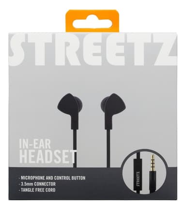 STREETZ In-ear hörlurar med mikrofon, media/svarsknapp, 3.5 mm, trasselfri, svart