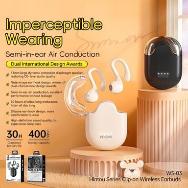 WEKOME WS-03 Bluetooth 5.4 Headset Semi-in-Ear Air Conduction Trådlösa hörlurar med laddningsfodral - Svart
