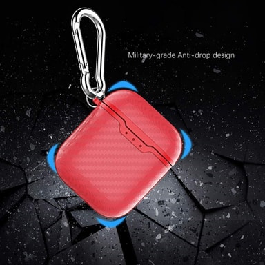 Airpods skyddsfodralet är tillverkad av stabilt kolfibermaterial med stötdämpande elastomerer, som effektivt förhindrar skador vid slag eller fall. Dessutom skyddar det stöttåliga skalet både dina Apple Airpod hörlurar och laddfodralet mot repor och smuts.