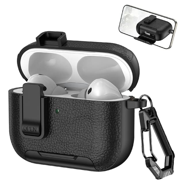 • För AirPods Pro 3 Skyddsfodral med stativ Fodral Skal med lås och karbinhake