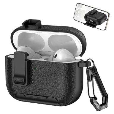 Skyddsfodral för AirPods Pro 3 med stativ Litchitexturerat TPU + PC-hörlursfodral med lås och karbinhake - Svart【Premiumskydd】Detta fodral är tillverkat av högkvalitativa TPU- och PC-material och erbjuder överlägset fallskydd för dina trådlösa hörlurLäs mer om produkten