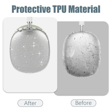 Glittrande design: Ge dina AirPods Max en unik uppgradering med detta fodral i transparent vitt TPU-material, försett med subtilt glitter. Det kombinerar stil med skydd och förhindrar repor, damm och stötar.