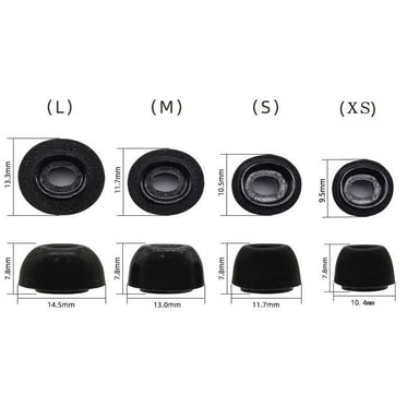 Öronkuddarna finns i tre storlekar. De är väldigt snarlika i storlek mot Apple original men kan upplevas något större på grund av Memory Foam.