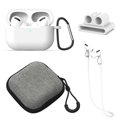 Komplett tillbehörsset: Setet innehåller fem delar: ett silikonfodral, en karbinhake, en rem, en klämma och ett skyddande förvaringsfodral. Detta ger dig alla nödvändiga tillbehör för att skydda och organisera dina AirPods på ett smidigt sätt.