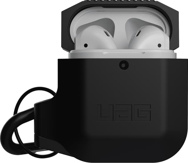 Med UAG Apple AirPods silikonfodral är dina AirPods gen 1 eller 2 hörlurar alltid väl skyddade. Fodralet är vattenresistent, och den slitstarka snodden garanterar att det hålls på plats. Fodralet är trådlös laddning-kompatibelt, och den medföljande löstagbara karabinen gör fodralet lätt att fästa på bältet eller väskan.