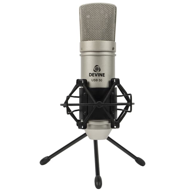 Devine USB 50 är en populär plug-and-play kondensor och gamermikrofon men är också mycket användbar, till exempel onlinemöte och videomötesmikrofon . Med den inbyggda interface du inte behöver göra något annat än att ansluta mikrofonen till din PC eller Mac med en USB-kabel . Mikrofonen har ett super-cardioid pickup-mönster, vilket betyder att den är extremt känslig för ljud som kommer från en riktning och är därför idealisk för sång. Så oavsett om du vill spela in sång för din musik eller lägga dig ner professionella kommentarer på dina bloggar, kan USB 50 rekommenderas. Mikrofonen levereras komplett med USB-kabel, stötdämpande hållare, ett bordsställ och en adapter för mikrofonstativ , så att du kan ansluta den till vilket stativ du vill. Smal och stilren design med massivt metallhölje. Fungerar med alla kända DAW programvara Kraftfull utgång utan distorsion Bithastighet 16 bitar Max samplingshastighet 48 kHz Max SPL: 130 dB - 139 dB Max frekvens: 17 - 17,9 kHz Minsta frekvens: 20 - 21 Hz