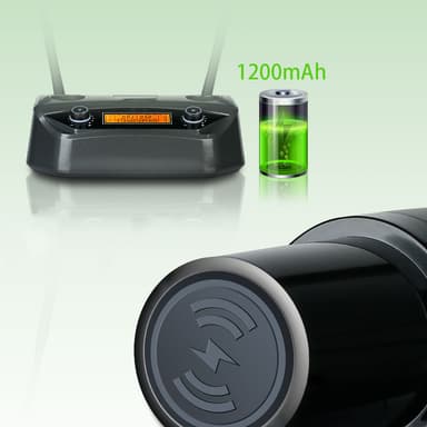 Inbyggt uppladdningsbart batteri: Njut av fördelarna med ett inbyggt uppladdningsbart batteri som anpassar sig efter dina laddningsbehov. Denna nya laddningsteknologi säkerställer optimal laddningsprestanda, förlänger livslängden på mikrofonen och bildar en pålitlig strömkälla.
