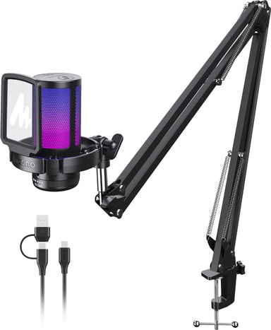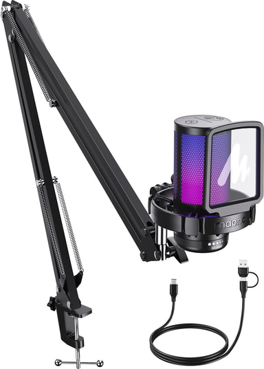 Maono DGM20S RGB-gamingmikrofon levererar 24-bitars studiokvalitet med kardioid ljudupptagningsmönster, inbyggd stötdämpare, tryck-för-att-tysta-sensor och RGB-belysning, perfekt för spelare och streamers.Läs mer om produkten