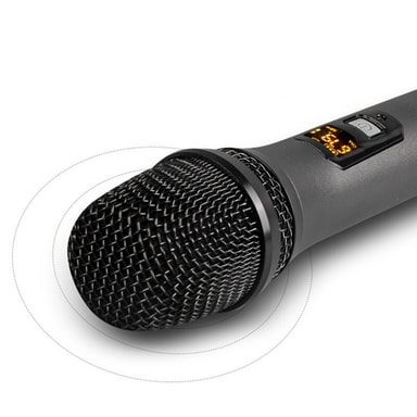 Inte lätt att vissla: Den trådlösa mikrofonen har avancerad teknik som minimerar risken för feedback och vissling, vilket säkerställer tydlig och oavbruten ljudöverföring.