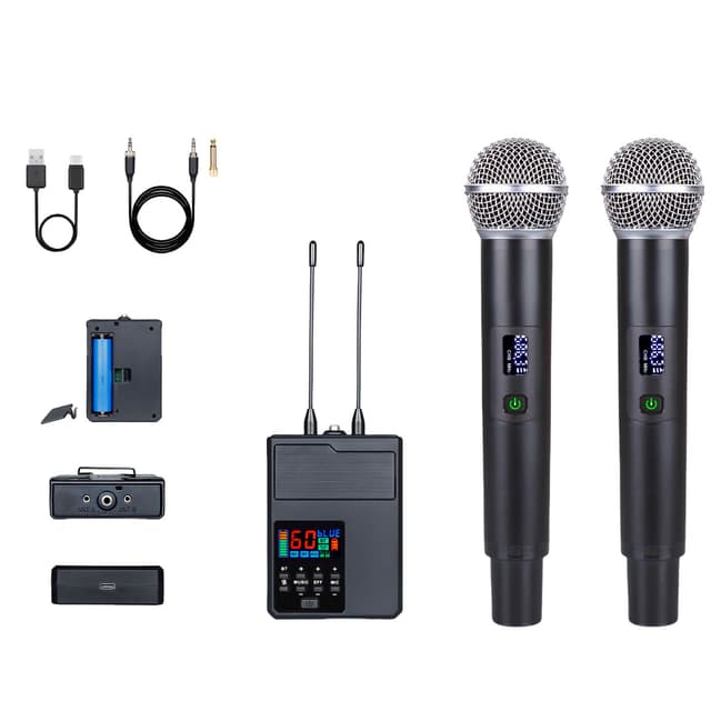 Lätt att använda och installera: Det trådlösa mikrofonsystemet är otroligt bekvämt. Anslut bara mottagaren till ditt ljudsystem och slå på mikrofonerna för omedelbar ljudöverföring. De intuitiva kontrollerna och den tydliga LED-displayen gör driften en bris.