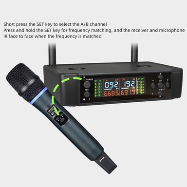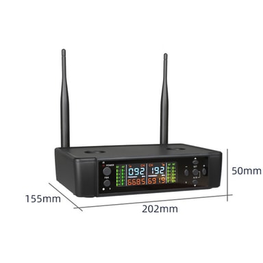 Bekväm trådlös laddning: Säg adjö till trassliga sladdar och frekventa batteribyten. Vårt mikrofonsystem har en trådlös laddningsbas, vilket ger ett problemfritt sätt att hålla dina mikrofoner laddade och redo att användas. Placera helt enkelt mikrofonerna på laddningsdockan när de inte används, så är de fulladdade för ditt nästa framträdande eller evenemang. Denna bekväma laddningslösning sparar tid och pengar samtidigt som den säkerställer att dina mikrofoner alltid är redo när du behöver dem.