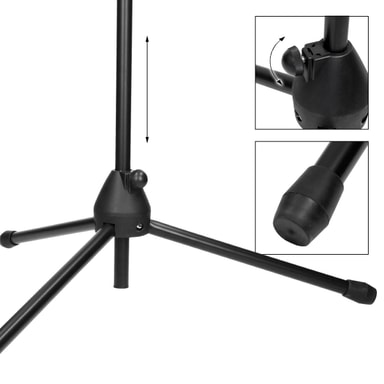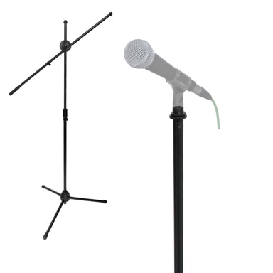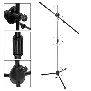 Omfattning av leverans: 1x mikrofonstativet stativ (mikrofonhållare och mikrofon ingår ej!) Tekniska specifikationer: Material: metall Svart färg kontinuerligt justerbar 170-240 cm Bomlängd: 80 cm Benlängd: ca 31 cm Basdiameter: 5