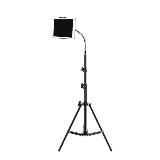 Praktisk stativ för mobiltelefoner och surfplattor. Klämman har en öppningsavstånd mellan 12-18cm. Viks ihop enkelt och det är smidig för transport. Flexibel svanhals med 360grader rotation.