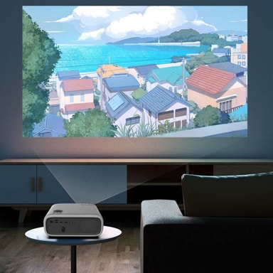 Fantastisk bildkvalitet: Upplev enastående visuell kvalitet med denna 4K Ultra HD-projektor, som levererar otrolig skärpa och livfulla färger. Med en upplösning på 1920x1080 (med 4K-stöd) och en ljusstyrka på 1000 ANSI lumen garanteras en kristallklar bild, även i måttligt upplysta miljöer. Perfekt för filmkvällar, spel och presentationer. Njut av dina favoritfilmer, spel och presentationer på en stor skärm och skapa en uppslukande hemmabioupplevelse med exceptionell detaljrikedom och klarhet.