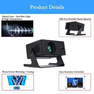 Uppslukande tittarupplevelse: Förvandla ditt vardagsrum till en personlig biograf med denna HD-projektor. Njut av fantastiska bilder med 1280x720 upplösning (stöder 1080P) och 130 ANSI lumen, vilket ger dina favoritfilmer, spel och presentationer liv med exceptionell klarhet och livfulla färger. Den stora projektionsstorleken skapar en uppslukande tittarupplevelse, perfekt för filmkvällar med familjen eller spelsessioner. Upplev magin på den stora skärmen i bekvämligheten av ditt eget hem med denna smarta projektor.