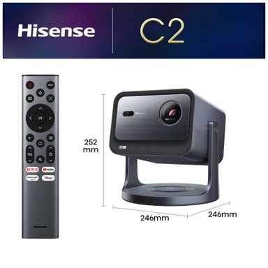 Hisense C2 Laser Mini-projektor levererar högkvalitativ bild, fantastiskt ljud och multimedial bekvämlighet i ett lätt format. Dolby Vision och DTS Virtual:X ger en biografliknande upplevelse var du än befinner dig, medan Auto Keystone-funktionen ger större frihet vid placering. Och du behöver inte oroa dig för livslängden, för med upp till 25 000 timmars lamptid kan denna projektor vara vid din sida under lång tid.