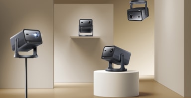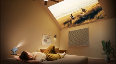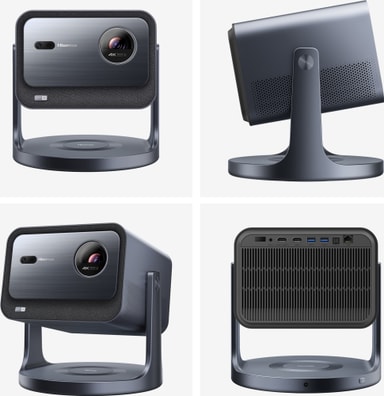 Kalibrera projektorn till din ideala betraktningsvinkel med ett gimbal som kan svänga maskinen 360° horisontellt och 135° vertikalt. Det är enkelt att projicera filmer både på en skärm och i taket.