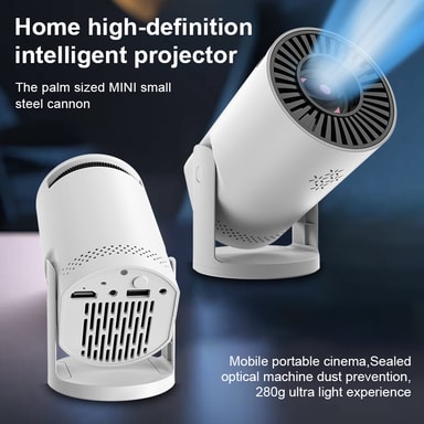 Bärbar och Tyst: Ta med din underhållning var som helst med denna ultrakompakta projektor, den minsta i sin klass, vilket minskar fraktkostnaderna och maximerar bekvämligheten. Dess unika design ser inte bara bra ut utan säkerställer också viskande tyst drift på bara 32dB, så du kan fördjupa dig i ditt innehåll utan distraherande bakgrundsljud. Den lätta ABS-konstruktionen gör den lätt att bära, perfekt för resor eller uppställning i olika rum.
