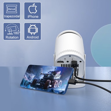 Sömlös Trådbunden Spegling: Anslut enkelt din smartphone via trådbunden spegling för omedelbar innehållsdelning. Ingen komplicerad installation eller trådlösa anslutningar behövs – bara koppla in och spela. Denna funktion gör den idealisk för att dela foton, videor och presentationer direkt från din telefon, vilket säkerställer en stabil och pålitlig anslutning varje gång. Projektorn har också USB- och AUX-portar för mångsidiga anslutningsmöjligheter.