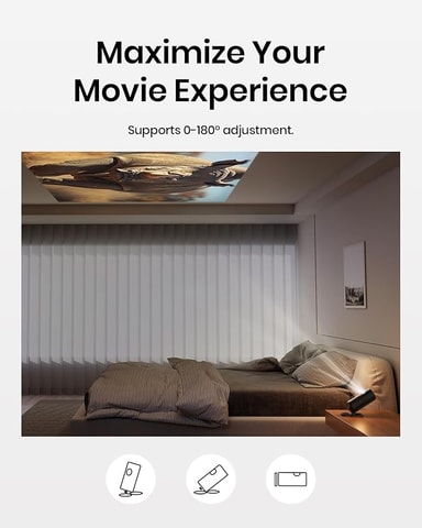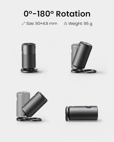 Nebula Capsule Series resefäste är ultrakompakt och designad för enkel montering och portabilitet med alla projektorer i Nebula Capsule-serien. Med en vikt på endast 95 g och hopfällbar till en slimmad profil passar den enkelt i väskor eller reseväskor, medan den 180° justerbara rotationen möjliggör både skrivbords- och takprojektion. Den verktygsföra installationen gör monteringen snabb och enkel, och den stabila designen säkerställer tillförlitligt stöd oavsett var du väljer att titta.