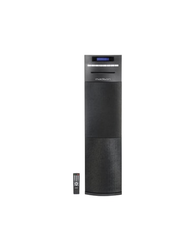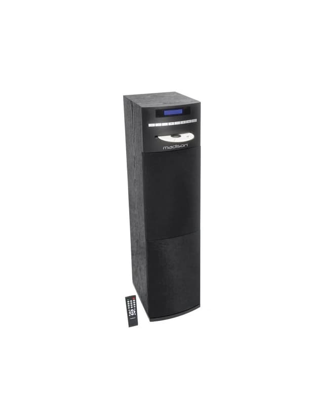 Madison Multimedia Tower med DAB+ & Bluetooth (svart) Feature Pack Multimedia Speaker Tower Enorma 200W ljud fyller alla rum med fantastiskt ljud. Lyssna på musiken precis som du vill med många uppspelningsalternativ. Gå digitalt och spela musik från din smartphone/smartenhet med bluetooth. Gå analogt och väck liv i din CD-samling via CD-spelaren eller via USB/AUX. Kan du inte välja själv så har multimediatornet både inbyggd DAB+/FM-radio. Skåpet har en snygg svart trälook med ett avtagbart frontgaller. Fjärrkontroll ingår.