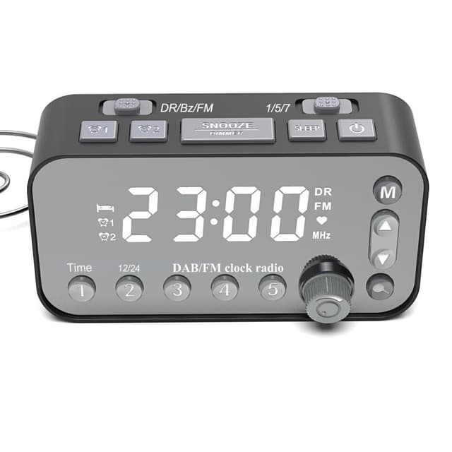 A1 LED-skärm vid sängen Digital väckarklocka FM / DAB-radioLagra favoritradiostationer i 1-5 nummer, snabbt och enkelt att väljaSuperstor skärm, klocknummer är tydligt synliga på natten och under dagenVäckarklocka inställning oberoende knapp design,