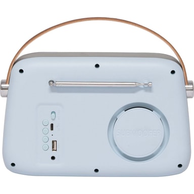 DAB-, FM- och Bluetooth-kompatibel. Förstärkt bas med bakmonterad subwoofer. USB-laddning med medföljande kabel. Inkluderar bärrem. Teleskopantenn...Läs mer om produkten