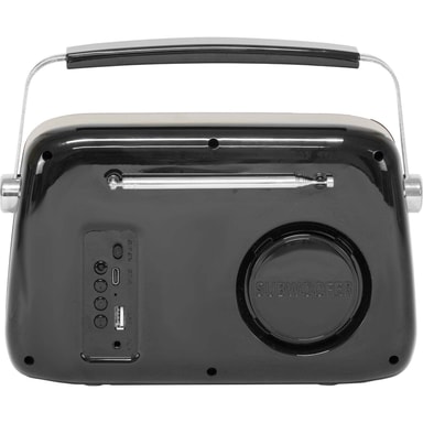 DAB-, FM- och Bluetooth-kompatibel. Förstärkt bas med bakmonterad subwoofer. USB-laddning med medföljande kabel. Inkluderar bärrem. Teleskopantenn...Läs mer om produkten