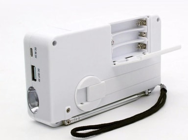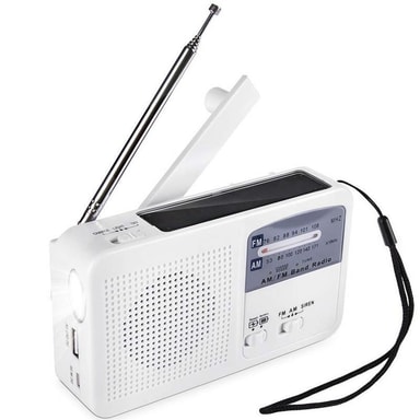 Otroligt praktiskt vevradio anpassad för krissituationer eller för dig som bara vill ha en mysig radio med dig ut i naturen. Denna radio har en inbyggd ficklampa och kan antingen laddas upp med medföljande USB-kabel, genom solceller eller veven på sidan. Otroligt välbehövlig vid exempelvis längre strömavbrott eller om du är långt ifrån en strömkälla. Den inbyggda lampan har 3 st mycket starka LED-dioder med ett klart och behagligt ljus. Du kommer aldrig gå energilös (mer än möjligtvis i armen!) med denna vevradio som även ger dig möjlighet att ladda din telefon eller liknande tillbehör.