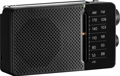 Denna fickradio har en modern horisontell utformning som ligger bekvämt i handen och står stadigt på plana ytor. Den inbyggda högtalaren låter dig lyssna utan hörlurar, medan monohörluraruttaget ger ett privat lyssningsalternativ.