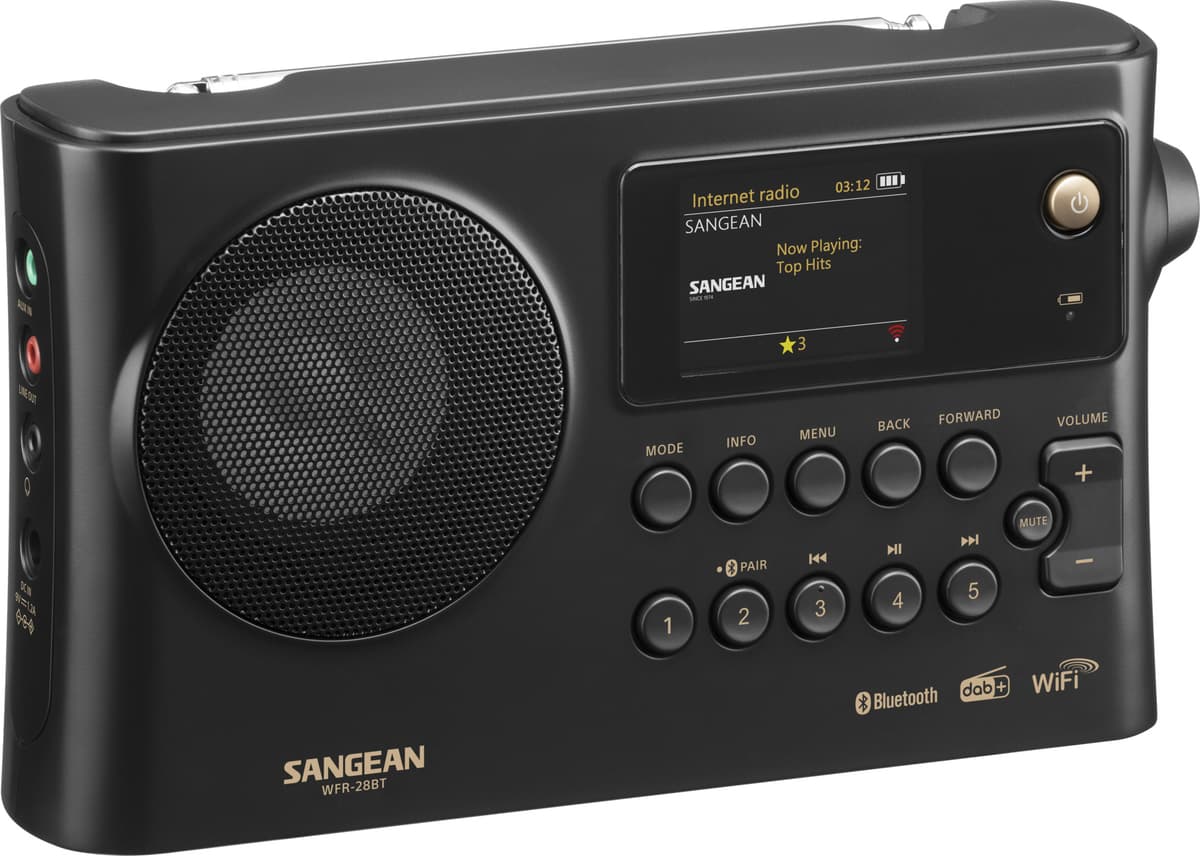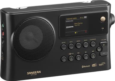 Sangean WFR-28BT är en ultrakompakt och mångsidig radio som kombinerar DAB+/FM, internetradio och Bluetooth i en enhet. Med tillgång till över 15 000 internetradiostationer, Spotify Connect och full kontroll via UNDOK™-appen får du en förstklassig ljudupplevelse. Den 2,4" färg TFT LCD-skärmen visar detaljerad stationsinformation, och dual-band Wi-Fi säkerställer en stabil anslutning. Med sju EQ-förinställningar, justerbar bas och diskant samt stöd för både uppladdningsbara och torra batterier är WFR-28BT perfekt för både hem och resor. Specifikationer: Radio: DAB+/FM-RDS/Internetradio Förval: 15 (5 DAB+/5 FM/5 internetradio) Skärm: 2,4" färg TFT-LCD Streaming: Bluetooth, Spotify Connect Wi-Fi: Dual-band (2,4 GHz & 5 GHz) Batteri: Uppladdningsbara & torra batterier EQ: 7 förinställningar + anpassad EQ (Flat, Jazz, Rock osv.) Anslutningar: AUX-In, Line-Out, hörlursutgång, USB DC-In Funktioner: Snooze, sleep timer, dubbel alarm