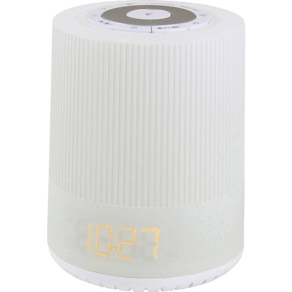 soundmaster UR230WE Klockradio FM Stämningsbelysning VitFM PLL-radio 10 förvalsminnen Display 3-stegs LED natt- / stämningsljus Olika färger kan väljas Kan även användas som vit läslampa Soluppgångsimulation Ljusstyrka kan ställas in 2 väckningstiderLäs mer om produkten