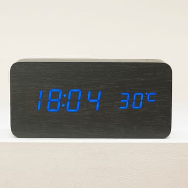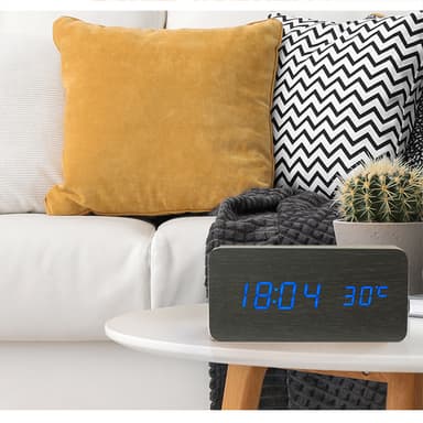 Modern digital väckarklocka med LED-siffror och stilren design. De lysande siffrorna ger ett milt och behagligt ljus som syns tydligt dygnet runt, då ljusstyrkan ändras automatiskt.Läs mer om produkten