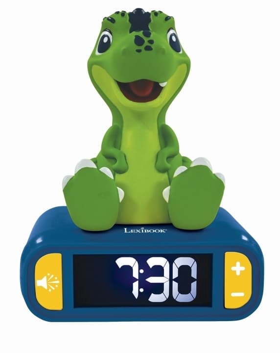 * En underbar design med dinosaurien som lyser upp i några minuter när du trycker på en knapp eller på klockans ovansida