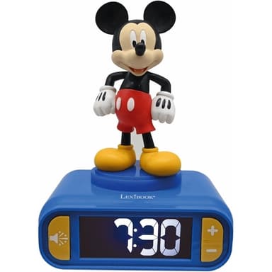 * En underbar design med Musse Pigg som lyser upp i några minuter när du trycker på en knapp eller på klockans ovansida