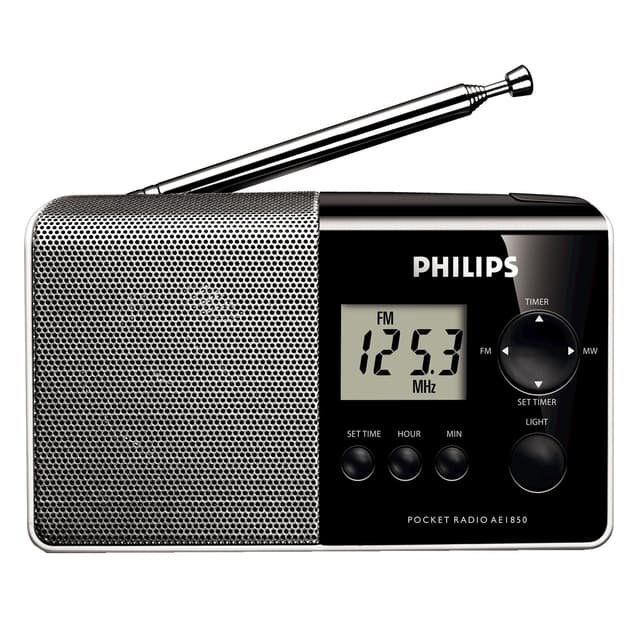 Bärbar radio från Philips med skonsam väckningsfunktion och en tydlig upplyst LCD-display som syns i mörker. De inbyggda högtalarna har bra ljudkvalitet och det radion är utrustad med uttag till hörlurar.