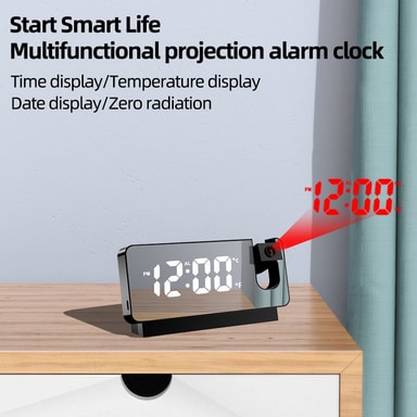 Smart projektionsfunktion: Klockan kan projicera tiden på vilken plan yta som helst, för enkel visning i alla vinklar. Perfekt för att kolla tiden bekvämt på taket eller väggen, utan att behöva flytta på dig eller tända extraljus.