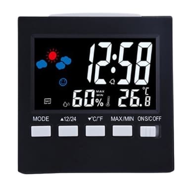 Vill du kolla vädret det första du gör på morgonen? Eller vill du snabbt och enkelt kolla vädret innan du går hemifrån? Då är denna väckarklocka något för dig. Denna väderstation har stora och tydliga siffror som gör det enkelt för dig att se vädret samt tiden. På klockans display kan du enkelt se vädret, tiden och veckodagen. Väderprognosen visas i form av luftfuktighet och temperatur. Väderstationen är även utrustad med väckarklocka för att kunna användas som just en väckarklocka.