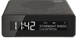 Klockradio med dubbla alarm och snooze-funtion. Den tar emot vanliga FM-signaler och dessutom digitala radiostationer, DAB+.