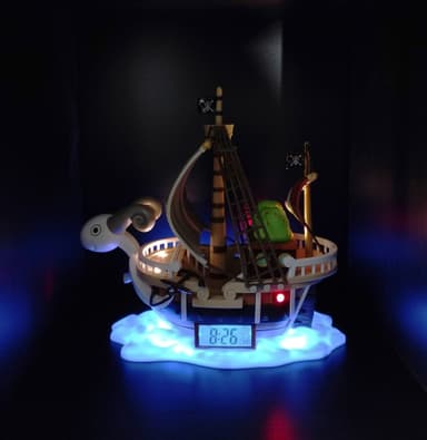 Teknofun Bateau Merry One Piece väckarklocka är en detaljerad kopia av skeppet från One Piece-serien. Den har en LED-belysningsfunktion med två ljuslägen och en bakgrundsbelyst digital LCD-skärm som visar tid, datum och rumstemperatur.Läs mer om produkten