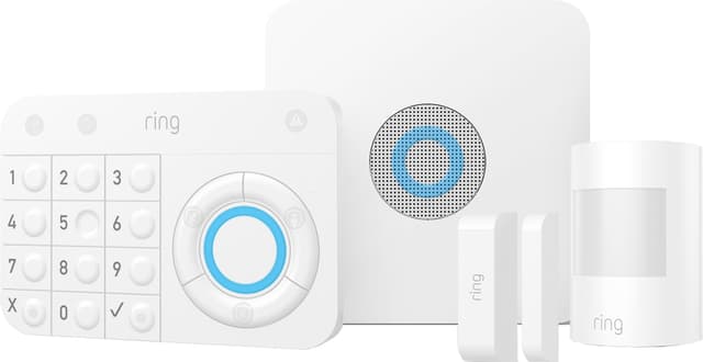 Ring Alarm säkerhetskit i 5 delar erbjuder ett smart hemsystem bestående av basstation, knappsats, kontaktsensor, rörelsedetektor och räckviddsförlängare. Det är enkelt att installera och helt justerbart för att passa dina behov. Kitet har även smarta funktioner som meddelanden i realtid via Ring-appen, säkerhetskopiering och valfri assisterad övervakning.