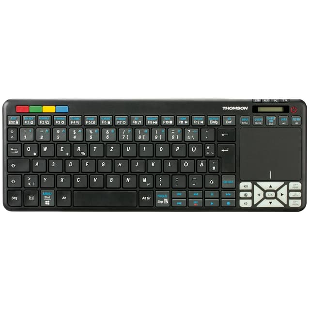 Thomson Smart TV fjärrkontroll med tangentbord ger dig möjlighet att styra upp till fyra enheter som TV, kabel box eller ljud-enheter. Fjärrkontrollen är försedd med speciella knappar för TV samt pekplatta för enkel och intuitiv navigering.Läs mer om produkten