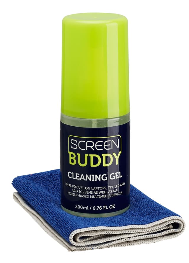 Praktiskt rengöringskit från Screen Buddysom hjälper dig att hålla skärmarna på din TV och dator rena. Innehåller gel som sprayas direkt på ytan och en mikrofiberduk som rengör utan att repa skärmen.