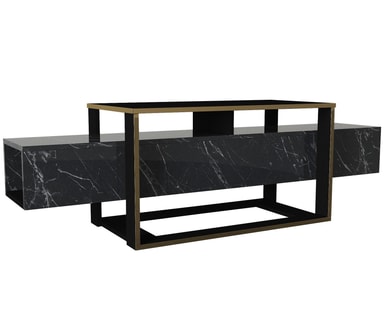 Bianco TV-bänk ger en lyxig Art Deco-känsla till ditt hem. Har ett dolt förvaringsutrymme i ramen. Tillverkad av 18 mm melaminbelagd spånskiva. B160 x H49,8 x D46,1 cm, övre hyllan B90 cm. Väggmonterbar.Läs mer om produkten