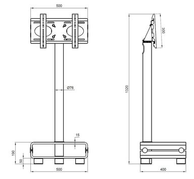 VESA standard med 200 x 200 och en maxhöjd på 117 cm från golvet till konsolen.