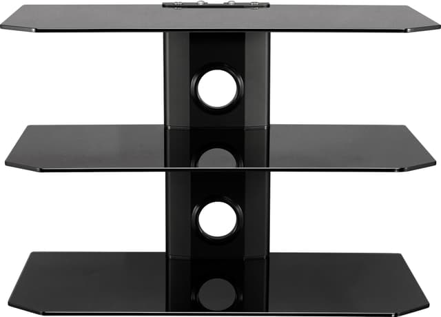 Praktiskt vägghylla som kan monteras på väggen under TV:n. Slimmad design och tre hyllor som ger plats till DVD- eller Blu-ray-spelare, spelkonsol och andra tillbehör.